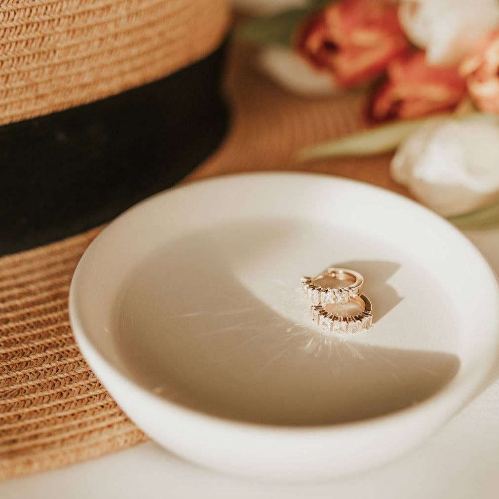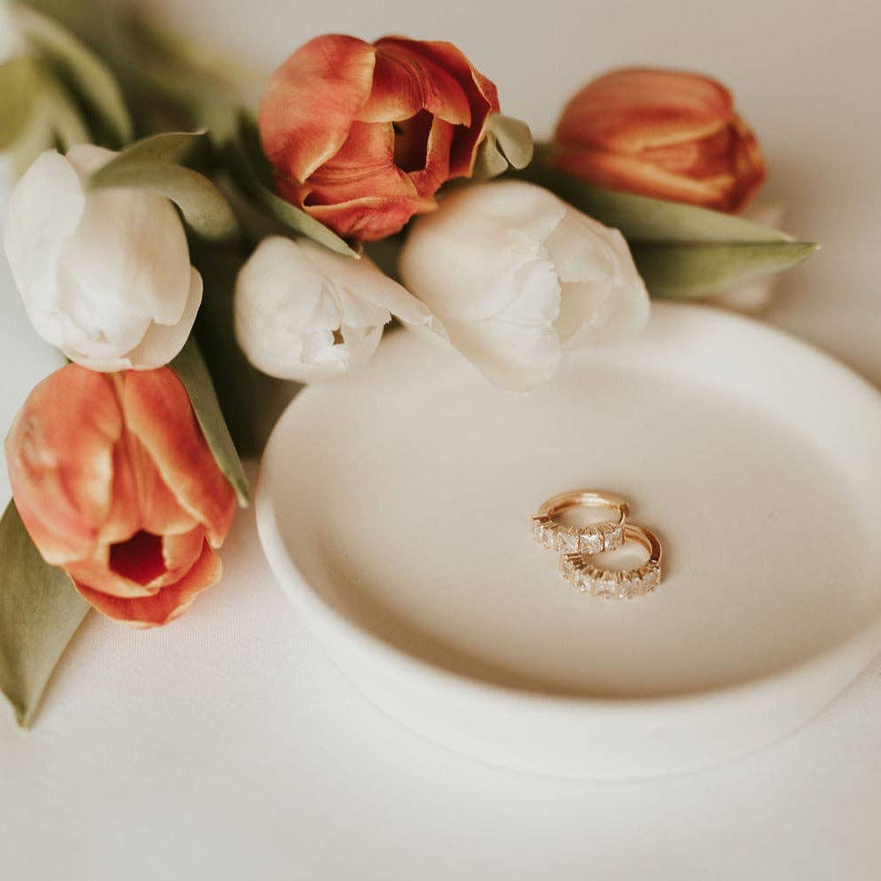 These Charlotte Diamond Hoops are dainty, high quality, and hypoallergenic. They are tarnish and wear resistant and made of long lasting 18k gold fill.