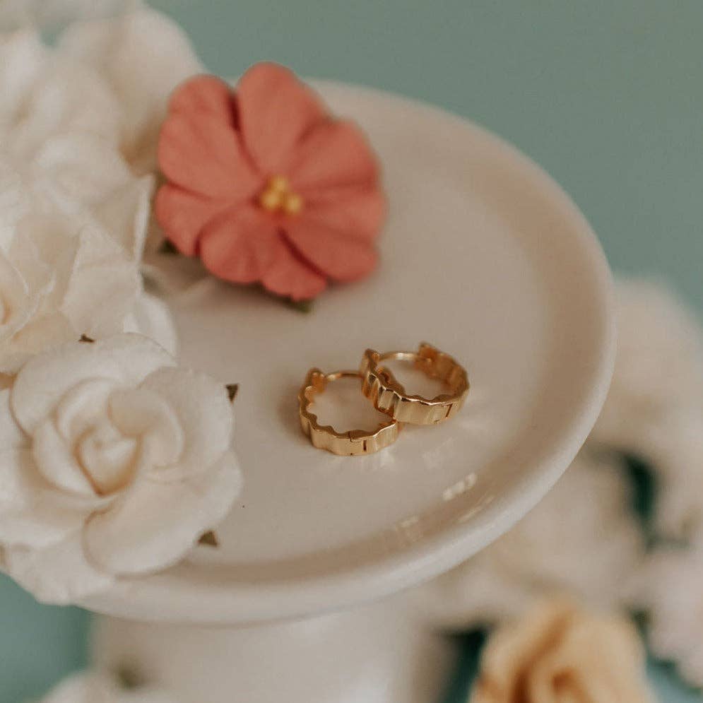 The Tate Cookie Cutter Hoops are the perfect pair of high quality live-in earrings. They are made of hypoallergenic sterling silver or gold vermeil, and are wear and tarnish resistant. Perfect for a single lobe piercing or to stack with other earrings.